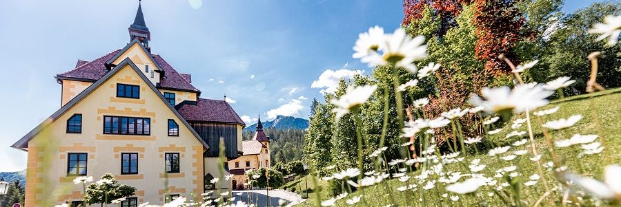 Die Wiesen färben sich grün, erste Blüten setzen Farbakzente im Schlosspark, die Berggipfel des Nationalpark Gesäuse zeigen sich klar und kraftvoll.